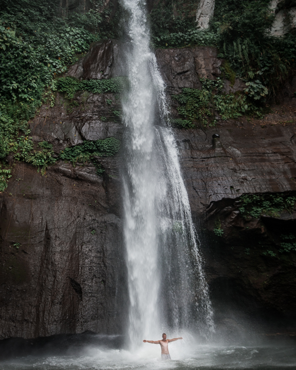 She gets onto her motorbike with her friend (or sister) and we follow her for what I thought would end up being a 5 minute drive, but turned into a 15 minute journey. Eventually we reach the place and she tells us the waterfall is down the path, and offers to stay to take us back through the town when we finish. We refuse and I insist that we give her a little money because we wouldn’t have found the place without her. She gratefully, and humbly accepts it, albeit quite surprised.